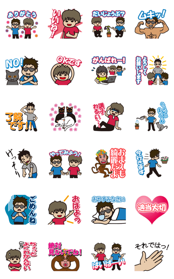 園芸初心者のyoutubeチャンネル「カトちゃんねる」がスタンプで登場。いとこのやっちゃんも加わって賑やかなスタンプになりました。
