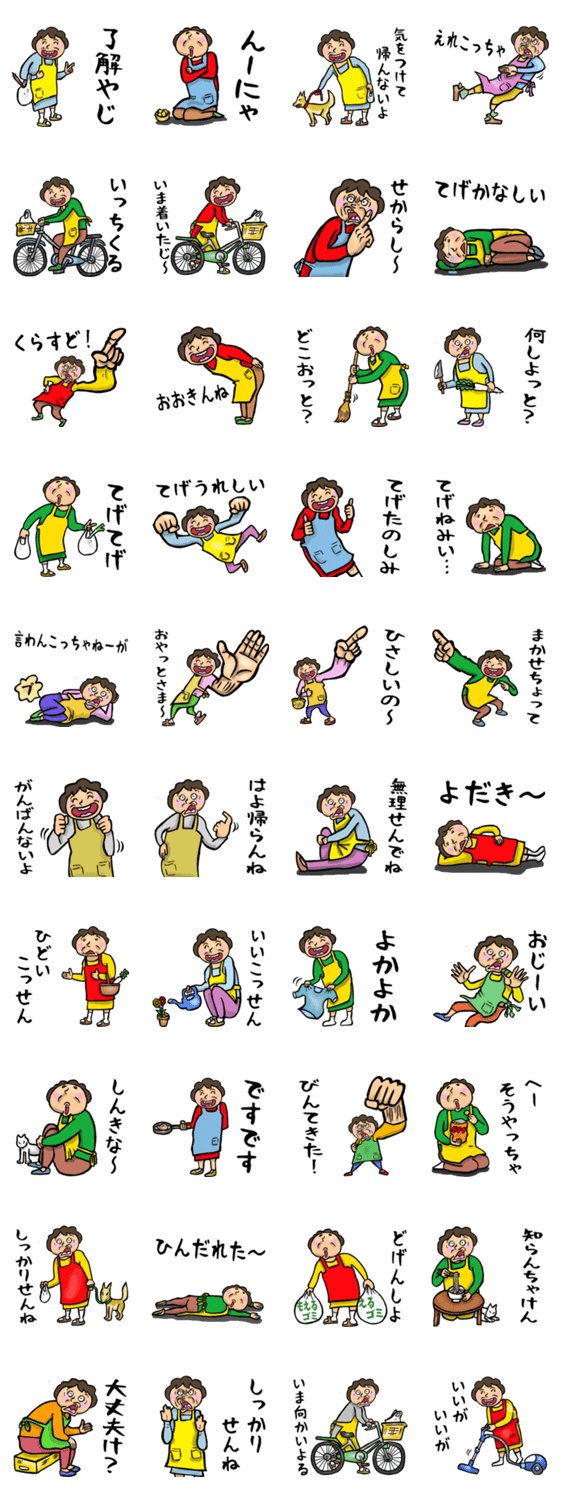 | スタンプ説明 | 宮崎県に住んでいる元気で優しいお母さんが、宮崎県の方言、宮崎弁を喋ります。 |