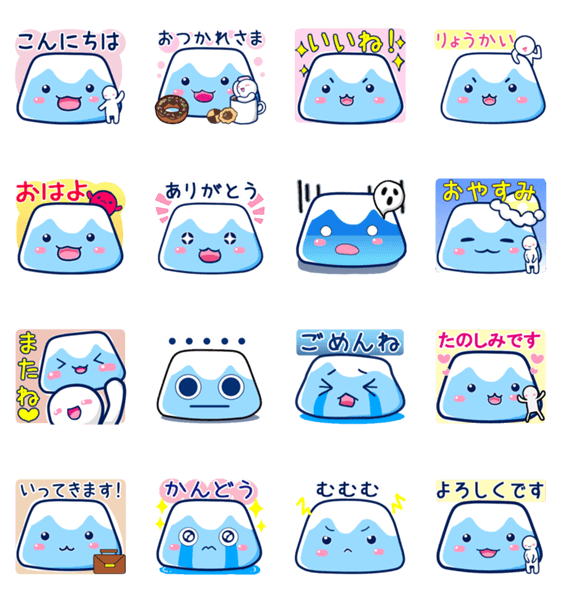| スタンプ説明 | 見ているだけで癒される日本の山「おやまちゃん」スタンプです。 小さい人も一緒で元気に挨拶ができますよ |