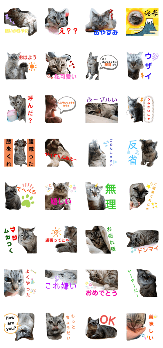 白ネコのあいうえお・・・ってるスタンプ
