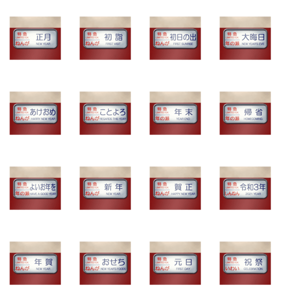 日本の鉄道部品です。列車の行き先をアレンジ。年賀仕様にしました。※あけおめスタンプ2021の対象です。対象スタンプまたは絵文字を購入するとLINEおみくじを引けます。