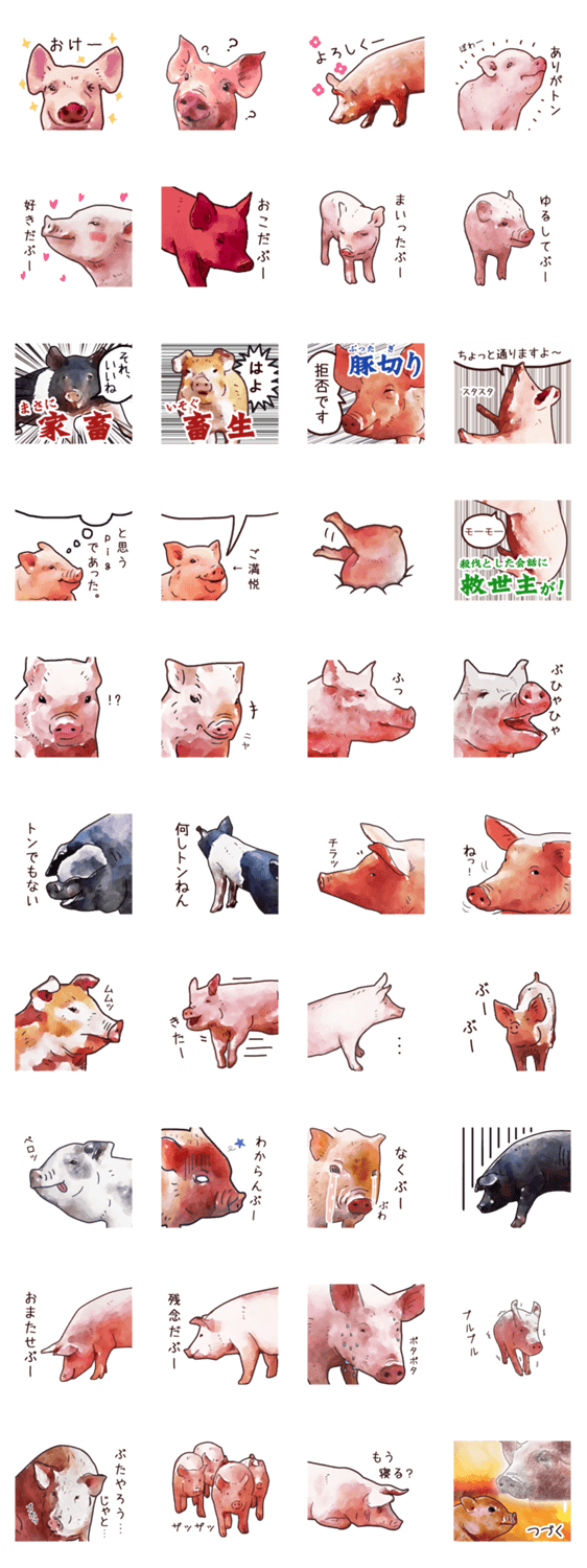 ゆるーい水彩の豚です。リアルなブタの日常。ダジャレだったり、アホだったり。キュート系。
