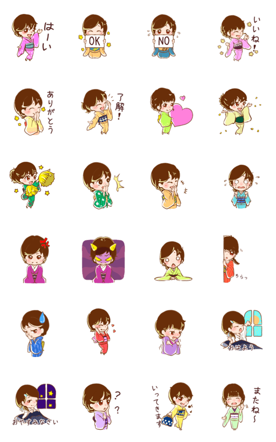 普段遣いできるキモノ女子のスタンプ。着物好き、日本文化好きにおすすめです