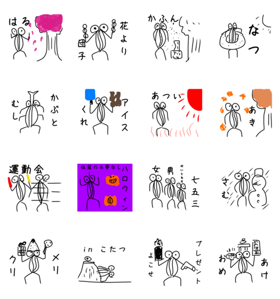 血突虫スタンプ(春夏秋冬)(背景白色) -LINEスタンプマニア