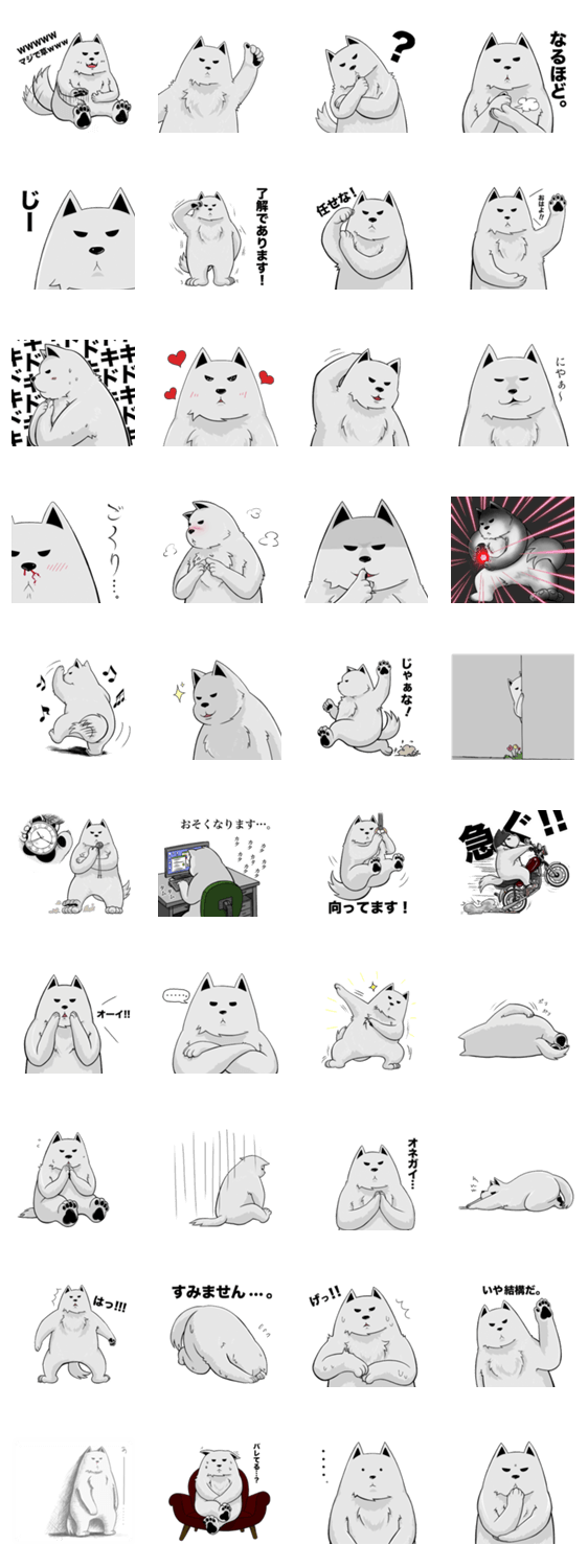 スタンプ説明 モフモフの毛並みを持つ、白い秋田犬のモフ吉です!