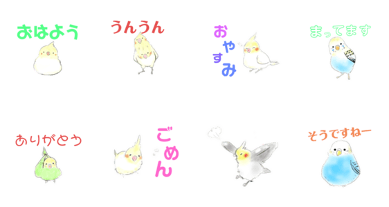 LINE Creators Studioでつくったスタンプです。いろんなインコがいます。
