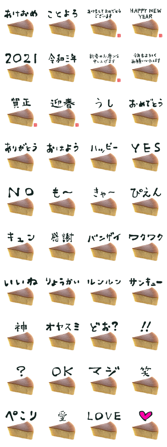 チーズケーキ 習字 年賀状 2021 -LINEスタンプマニア