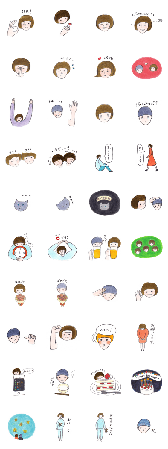 前髪ぱっつんな女子&男子がかわりに会話してくれます。(たまにネコも)