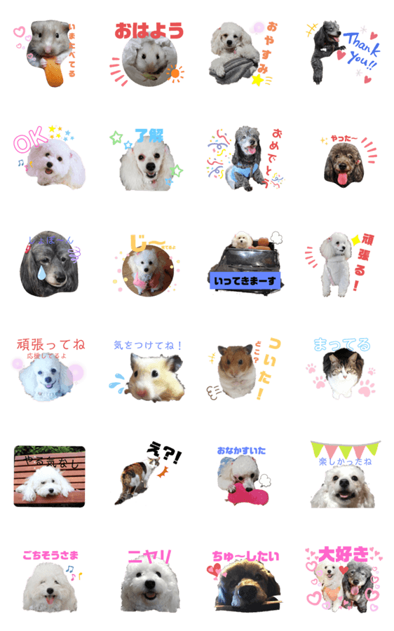 うちのこたちのスタンプ ダップーのメルディ、白プーのメリー、友情出演ニャンズ、ハムズ