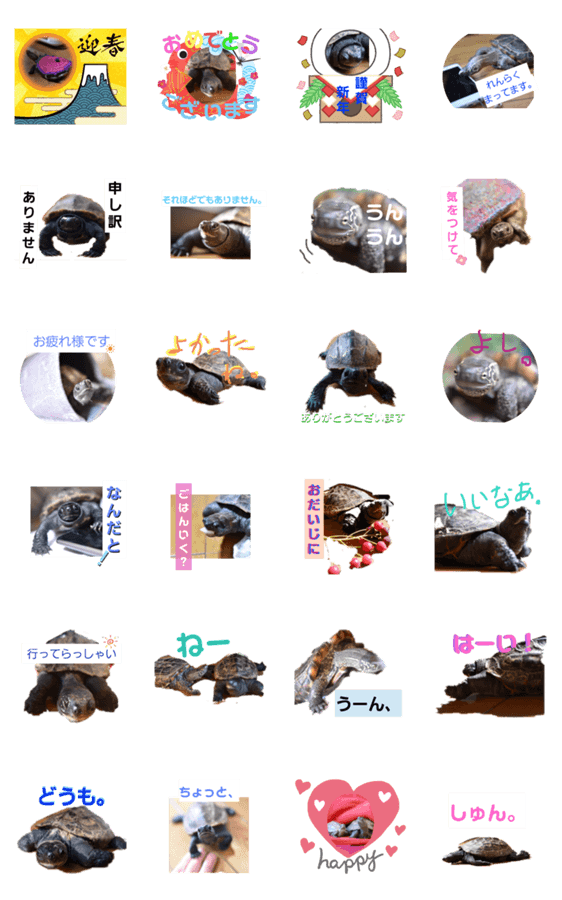 亀好きのかたもそうでないかたも。縁起の良い亀(クサガメ)たちのスタンプです。お正月用も一部あります。