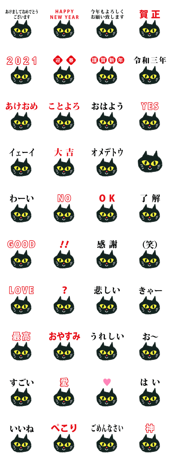 黒ねこ 顔 年賀状 2021 -LINEスタンプマニア