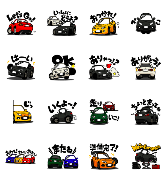 きびきび走る、コンパクトなオープンカーのスタンプです! 友達同士で、チームのグループLINEで、愛車をアピールしちゃおう!