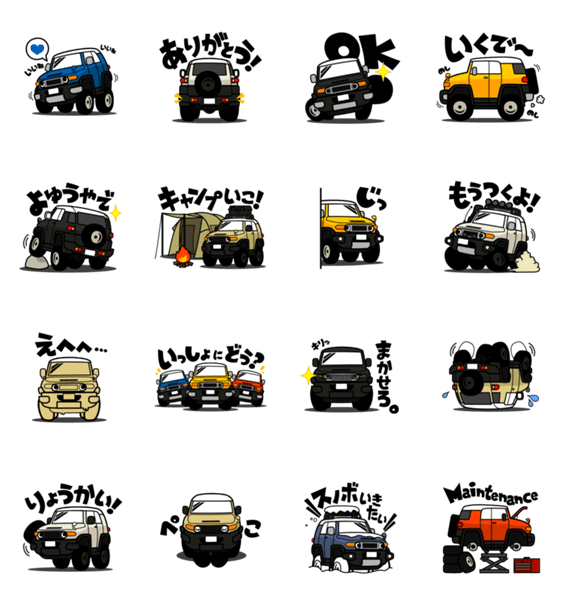 キュート&ビッグな愛くるしい四駆のスタンプです!友達同士で、オフロードチームのグループLINEで、愛車をアピールしちゃおう!