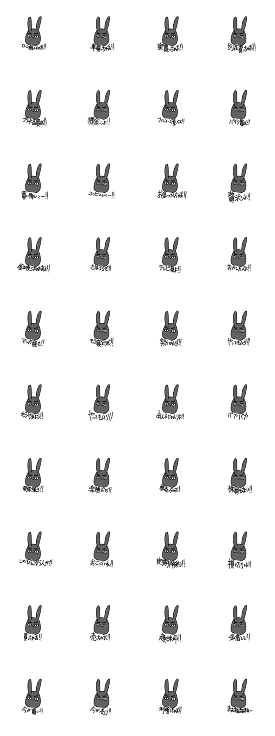 スタンプ説明 右肩上がりカネ三郎の黒いスタンプ。