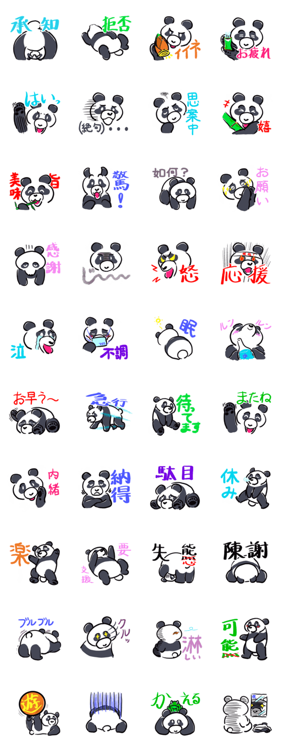 パンダのマーチャンが漢字(勉強中!)でシンプルに気持ちを伝えるスタンプです!