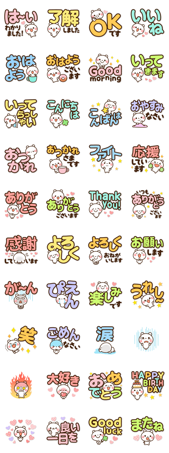 カラフルで見やすく選びやすい「大文字スタンプ」です♪ しろくまの「気持ちを伝える日常トーク」を楽しんでください♫