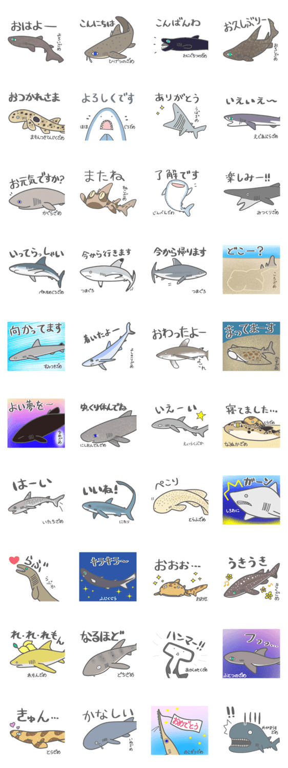 全部違うサメのサメづくしのスタンプです。40種のサメが入っています。
