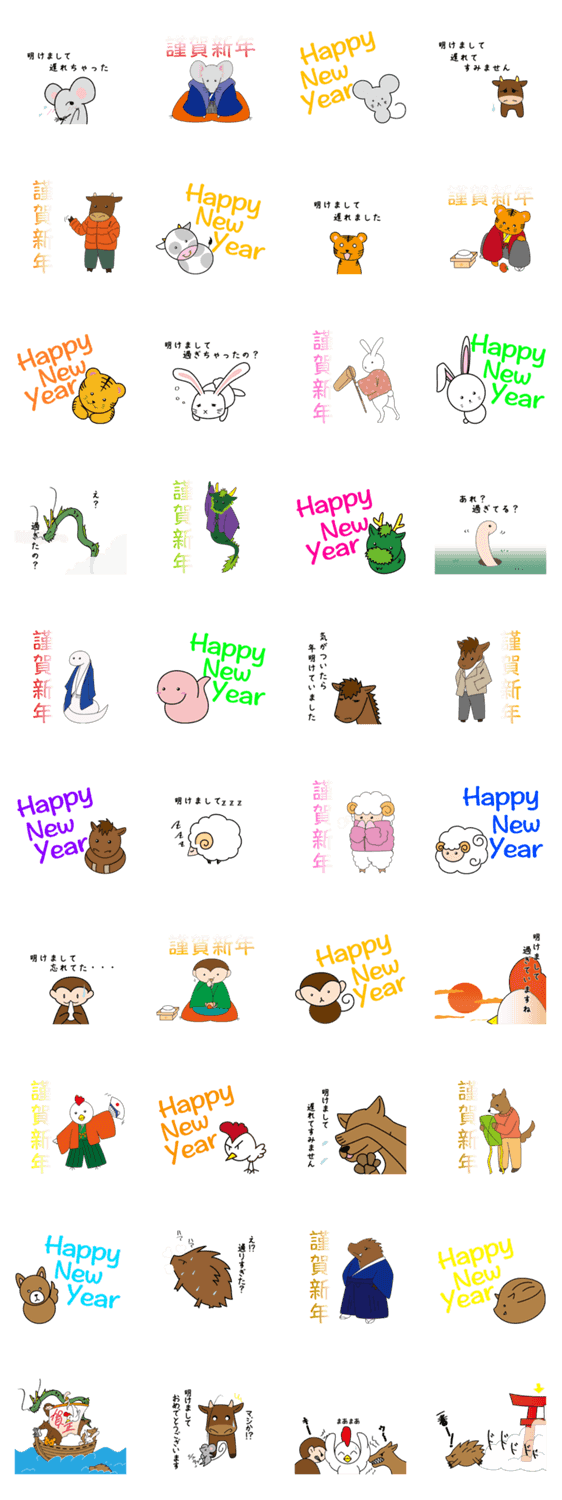 お正月の挨拶。十二支パック -LINEスタンプマニア