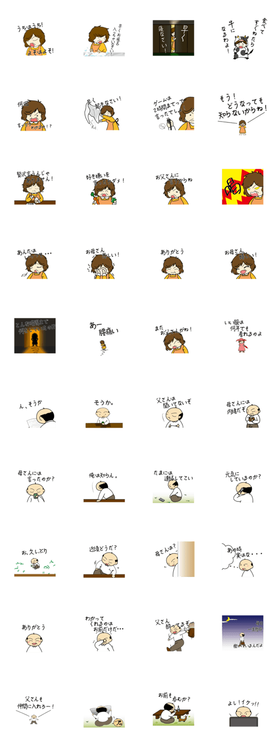 子供の頃によく親から言われたセリフをスタンプにしました。こんなこと言われたな〜とか今言われている真っ最中など、楽しんでいただければ。
