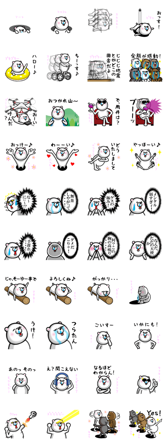 かわいいシロクマの「くまのすけ」のスタンプ、第2弾です!クマのくせにゆるい顔してちょっとうざめな言葉は相変わらず!白熊界のスターへの道はまだ遠い!