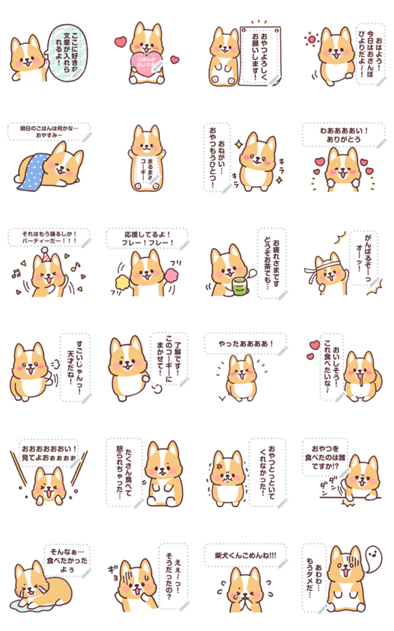 まるまるコーギーのメッセージスタンプが出ました!好きな文章を最大100文字まで入れられ、文章は何度でも書き替えられます。コーギーくんに好きなことを言わせてみよう! 現在この商品は一部のスマートフォン版LINE 10.3.0以上のトークルームでのみ使用できます。動作環境の最新情報はヘルプをご確認ください。