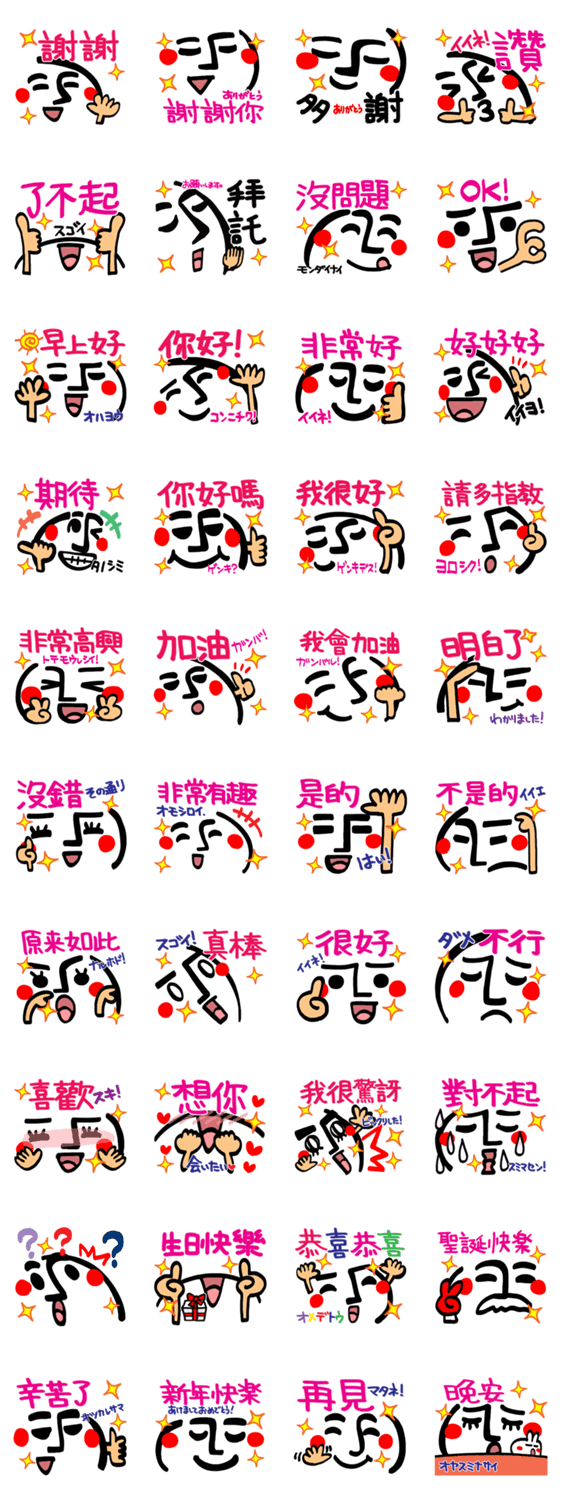 | スタンプ説明 | 可愛いリアクション。(シンプルで印象深い顔のリアクションです。)(台湾。日本語。) |