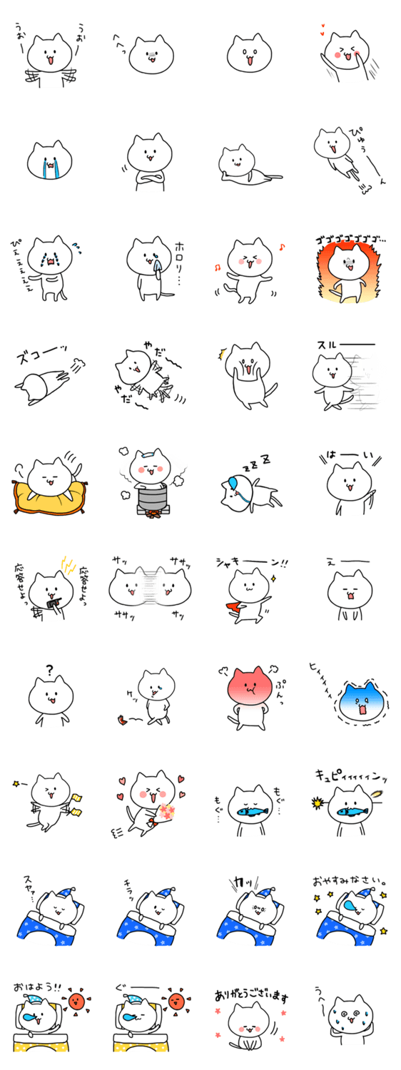 白ネコのあいうえお・・・ってるスタンプ