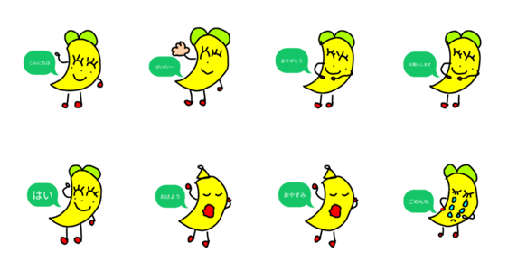 パイナップルちゃんの挨拶スタンプです。 トークの始めにこのスタンプを送っちゃおう!!!!!一Qパイナップルちゃんとは?ー:A.パイナッルちゃんは6才の女の子です。