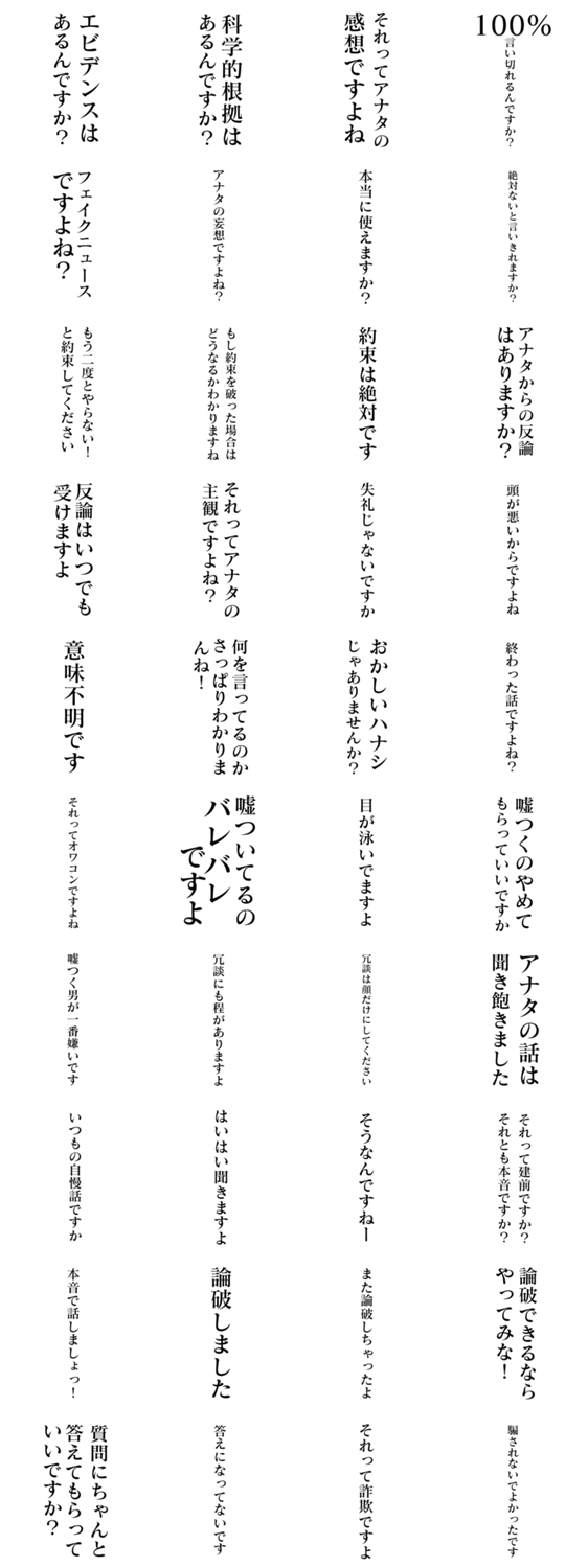 | スタンプ説明 | 大人が論破するスタンプです。/論破/論破する/煽り/デカ文字/大人/大人女子/毎日使える/ずっと使える/ウザい/毒舌/挑発/面白い ※このスタンプはトークルームで大きく表示されるBIGスタンプです。 |