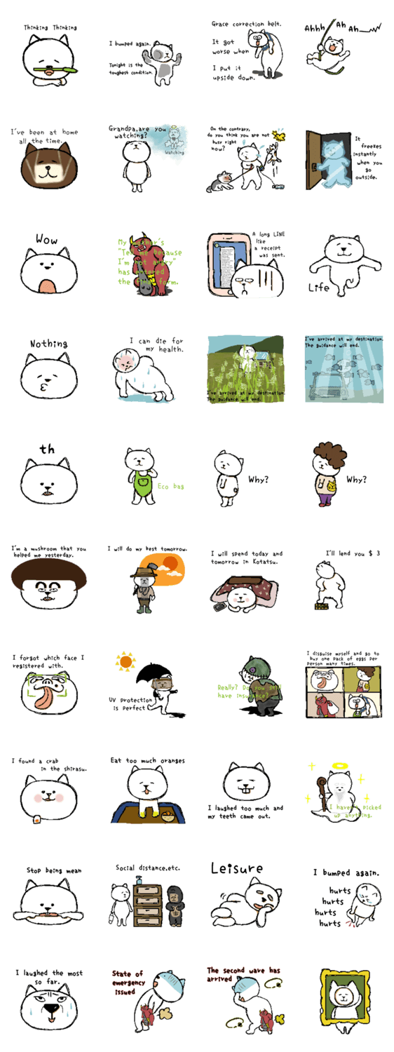 白ネコのあいうえお・・・ってるスタンプ
