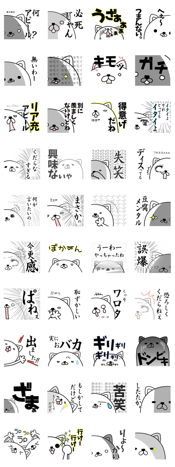 pegの、毒舌ツッコミねこ。2回目は、煽り。大きな文字で見やすいよ。半顔ネコの、毒舌ツッコミ猫スタンプ。