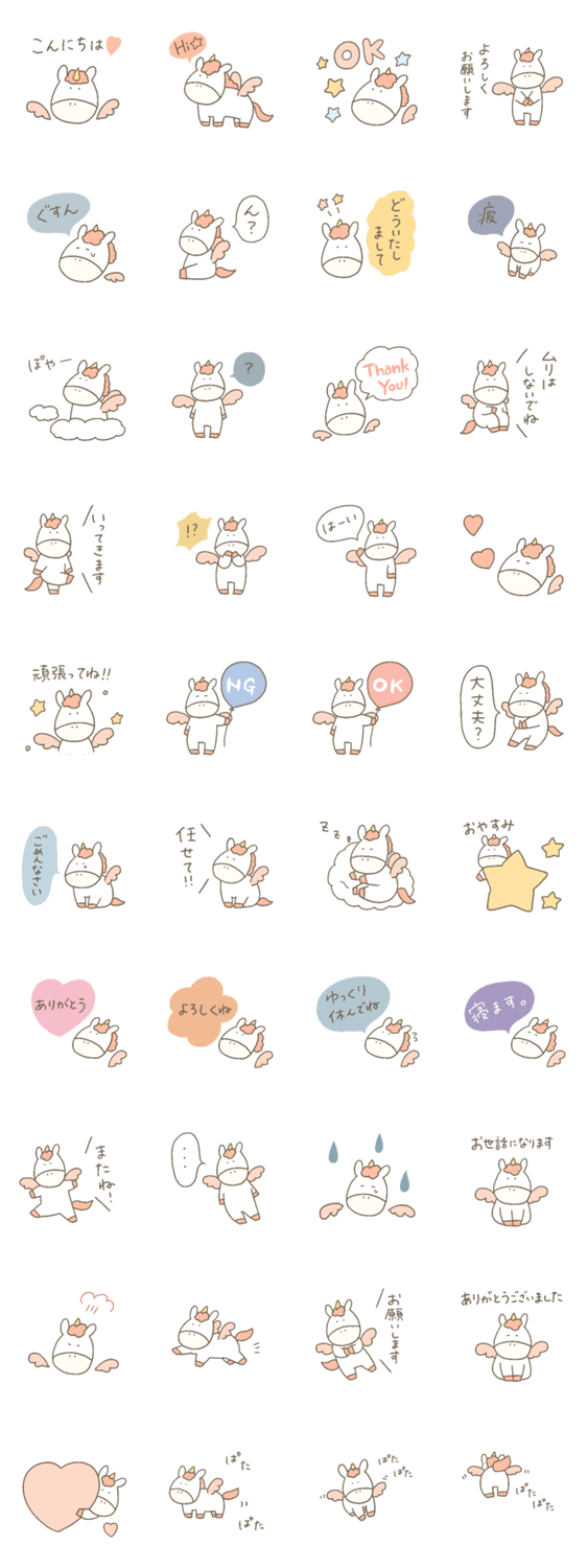 ゆるいペガサス/ユニコーンのスタンプです。日常会話/シンプル/可愛い