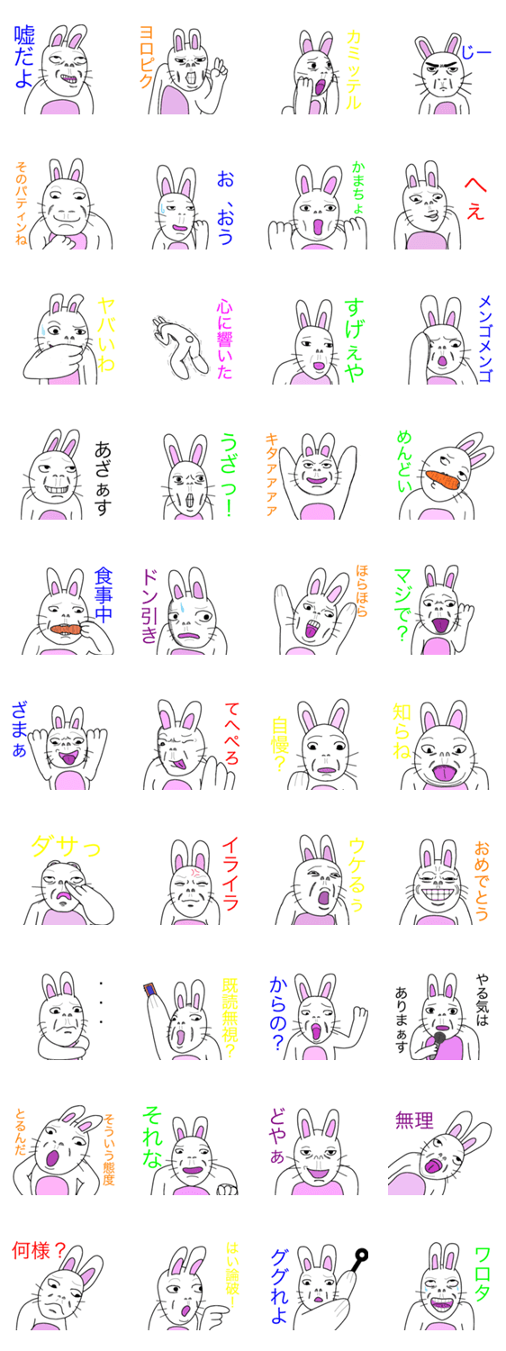 ウザさを極限まで追求したスタンプです。世界で最もウザいウサギのスタンプをあなたもつかってみては?