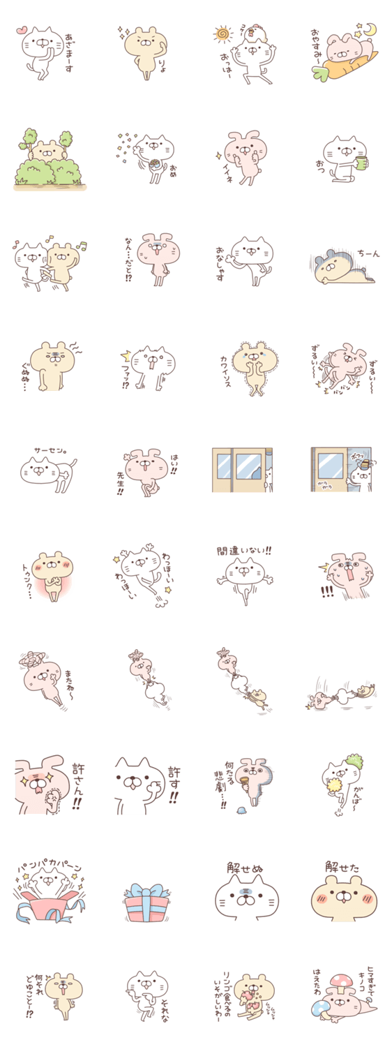 ゆるっと可愛いネコのにゃ太とお友達のうさP、くーたんのゆるーいスタンプです