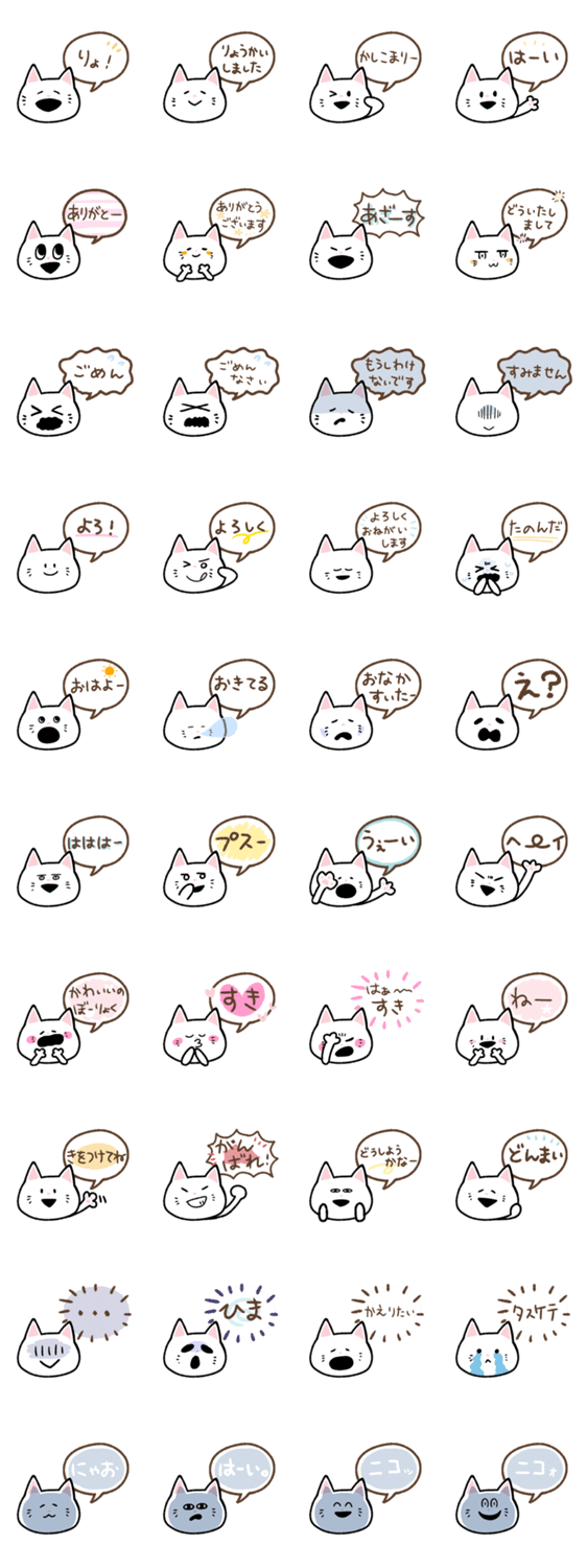 白ネコのあいうえお・・・ってるスタンプ