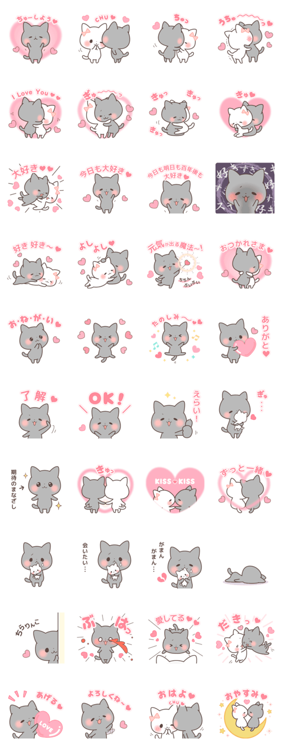 | スタンプ説明 | ラブラブ猫のスタンプ。カップルや夫婦、大好きな人と一緒に使える愛がいっぱいつまったスタンプです♡ |