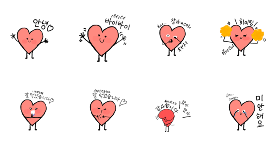 スタンプ説明 ハングル文字を無駄に使いたがるハートちゃん