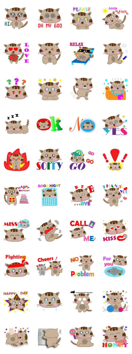 | スタンプ説明 | Hello , I'm fat tiger cat , likes to lie and sleep , hope u guys become good friends Oh! |