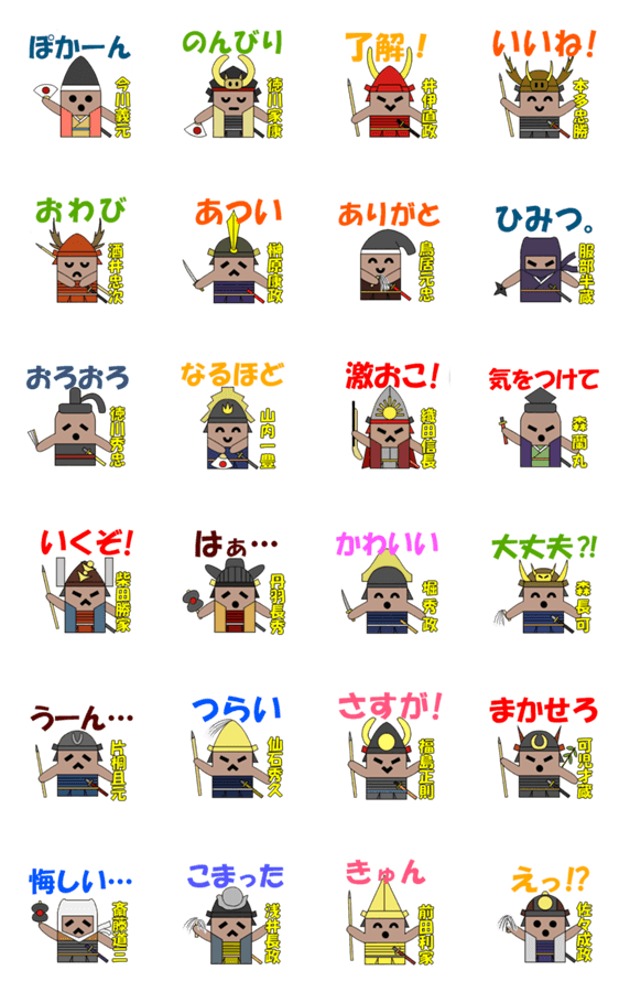 戦国武将と埴輪をもとにしたキャラクターです。 第ニ弾はおもに東海地方ゆかりの武将ハニワたちです。 #初売りスタンプ