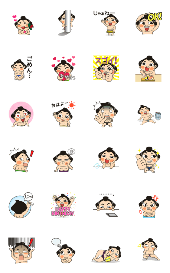 | スタンプ説明 | キュートなお相撲さんが全身で気持ちを表現します。 毎日使えるうごくスタンプです。 |