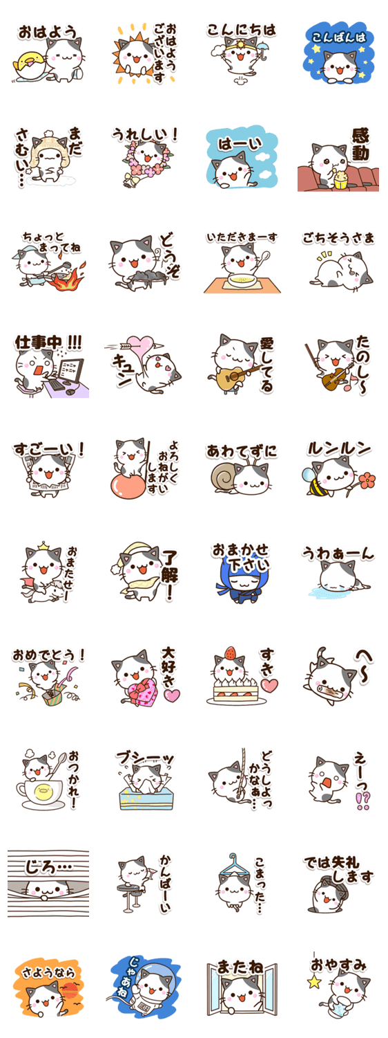 ちびっこいブチネコのスタンプです。かわいく、シュールに返信できます。ねこ好きな方にぜひ。【かたこ】