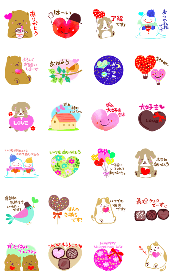 バレンタインの時期にぴったりなハートモチーフがいっぱい登場するスタンプです。家族や友人、恋人…大切な人に日頃伝えられない気持ちを伝えよう! #初売りスタンプ