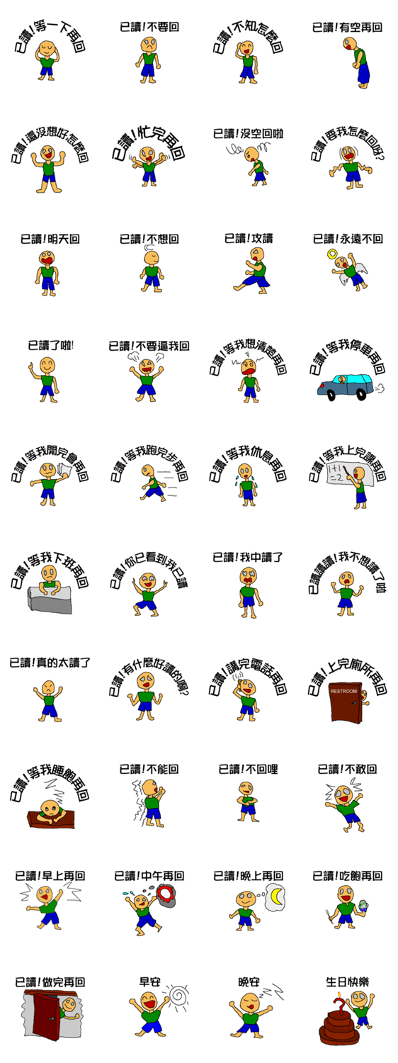 | スタンプ説明 | A strange man who always say "read" before he speak. |