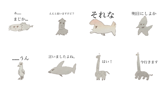 LINE Creators Studioでつくった、身内の画伯によるスタンプです。