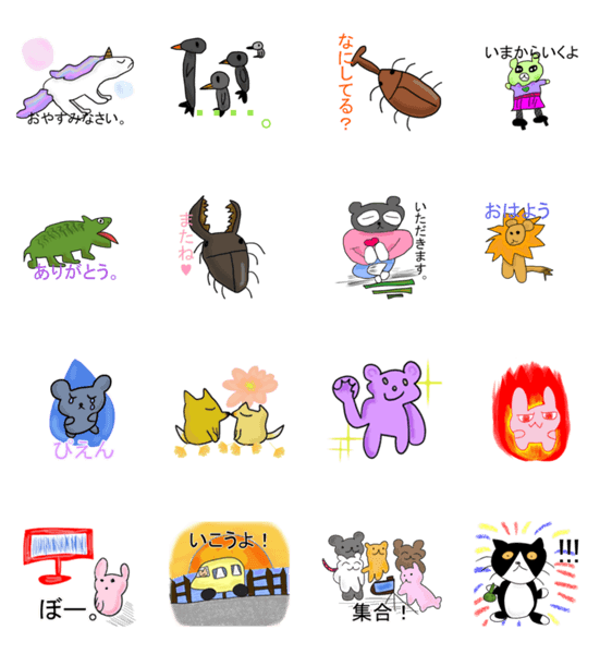 こどもの絵スタンプ(ゆかいな動物たち) -LINEスタンプマニア