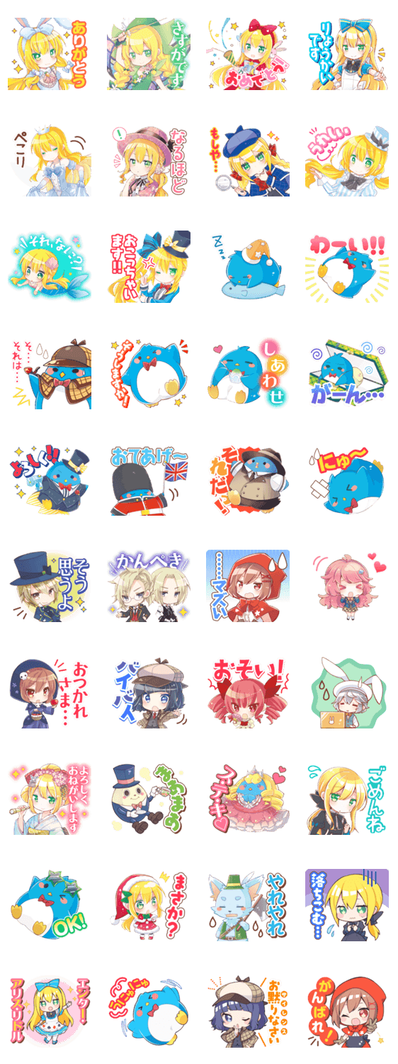 | スタンプ説明 | 小学館ジュニア文庫より刊行している小説『華麗なる探偵アリス&ペンギン』の登場キャラクターを、スタンプにしたものです。 |