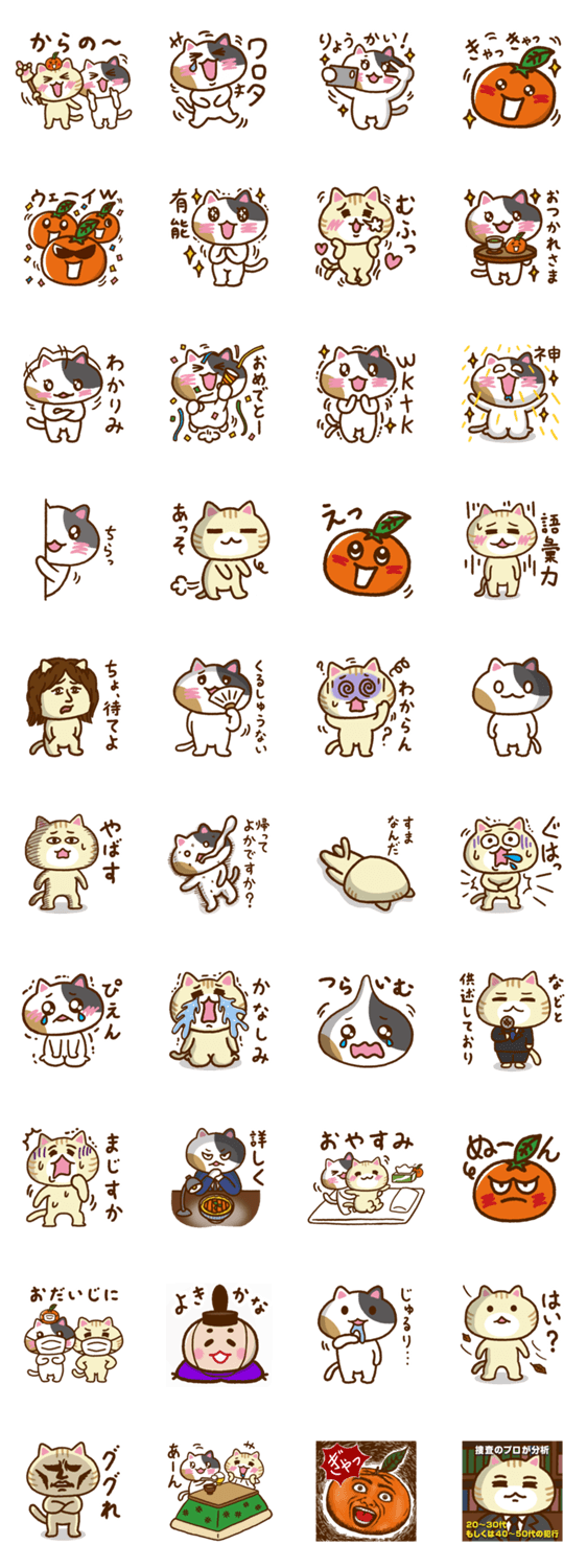 みんなの介護の公式キャラクター「うめとこんぶ」のスタンプがついに登場!ゆるっとかわいいネコ(+みかん)と一緒に、友達や家族との会話を盛り上げよう♪