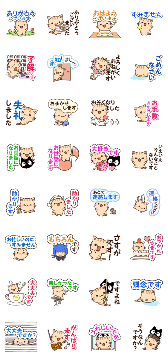 ちびっこいトラ猫のネコスタンプです。かわいく、シュールに返信できます。敬語なので、どなたにでも使えるスタンプです。ねこ好きな方にぜひ。【かたこ】