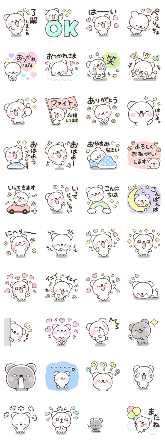 | スタンプ説明 | 落ち着いた色のみを使用したしろくまさんのパステルカラースタンプです。【作:いしいともこ】 |