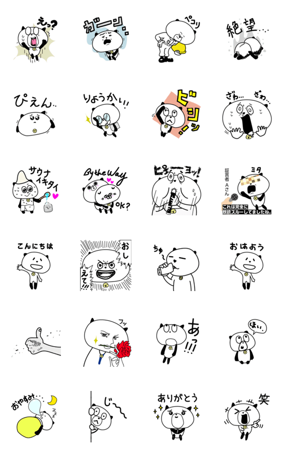 かわいくて、キモくて、時には愛おしい。 クマにもネコにも見えるかもしれませんがパンダです。 日常使えるスタンプを揃えました。サウナもあります。